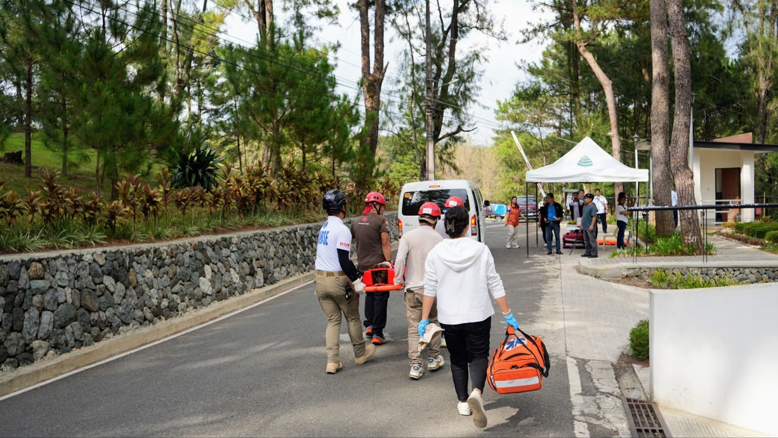 Camp John Hay, Baguio City – On March 28, 2025, at 3:00 PM, John Hay Management Corporation (JHMC) held a fire evacuation drill to test its emergency response readiness. The simulation presented was a fire erupting in the ground-level pantry area, which triggered the emergency alarm. JHMC employees promptly evacuated the building via designated pathways—the lobby and fire escape—since other exits were inaccessible. The drill also involved the simulation of injuries, where one employee received a forehead cut on the second floor and another could not walk because of a suspected spinal injury on the ground floor.